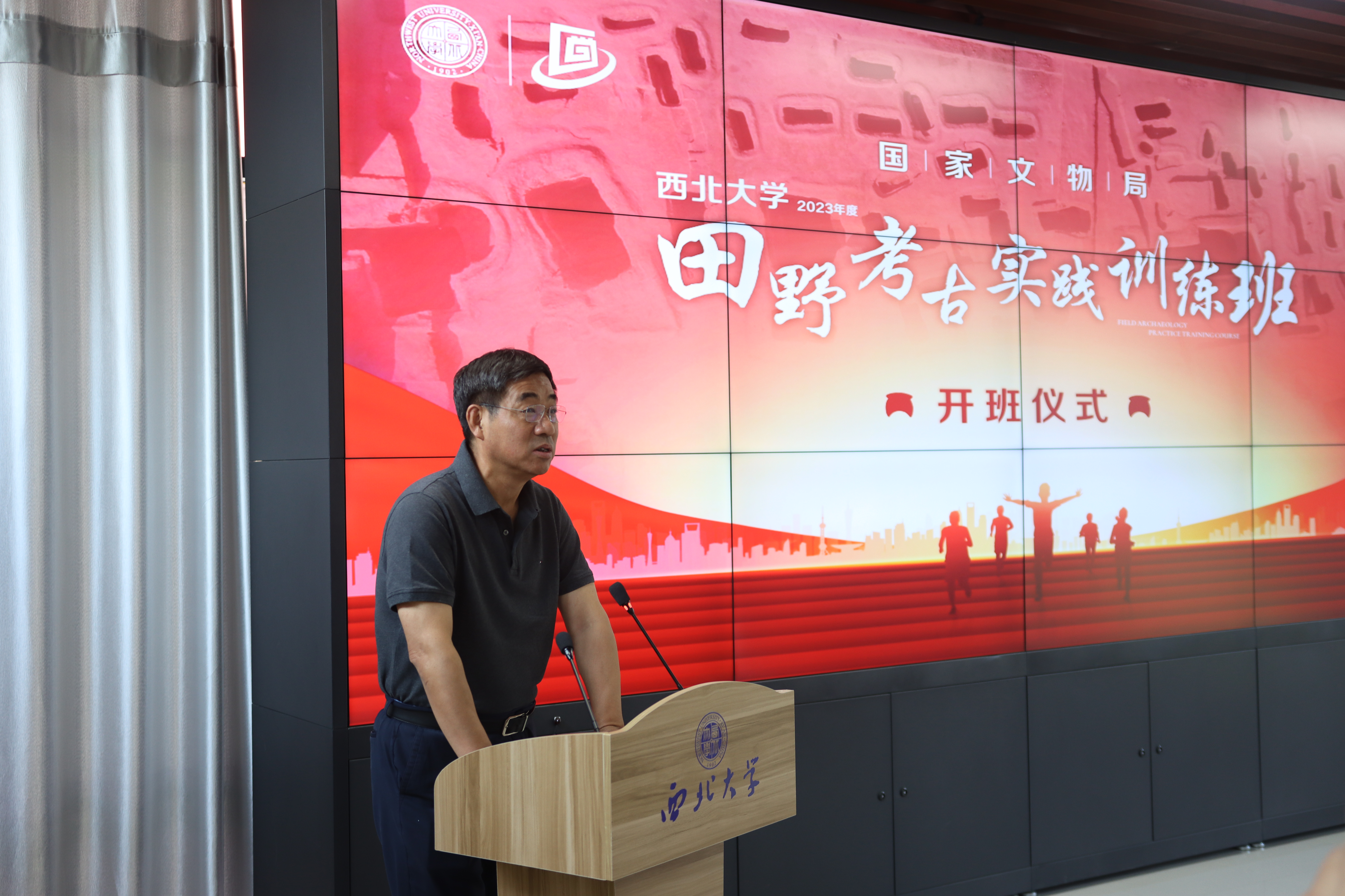 马宝收向本次田野考古实践训练班的顺利开班表示祝贺。他指出长期以来陕西省文物局和1946伟德官方网站依托深厚的合作基础和资源优势,围绕提升考古行业人才水平、壮大考古人才队伍,开展实施了多层次、多类别的人才培养培训实践,培养了一大批优秀专门人才,相信随着培训基地的不断建设完善,会在满足国家考古学高层次人才需求、提升考古学科建设质量的过程中不断取得新突破、新进展。同时希望各位学员能够系统学习考古学理论与田野操作能力,将所学所练活用到今后的考古实践,为促进我国文物事业蓬勃发展贡献新时代青年力量。