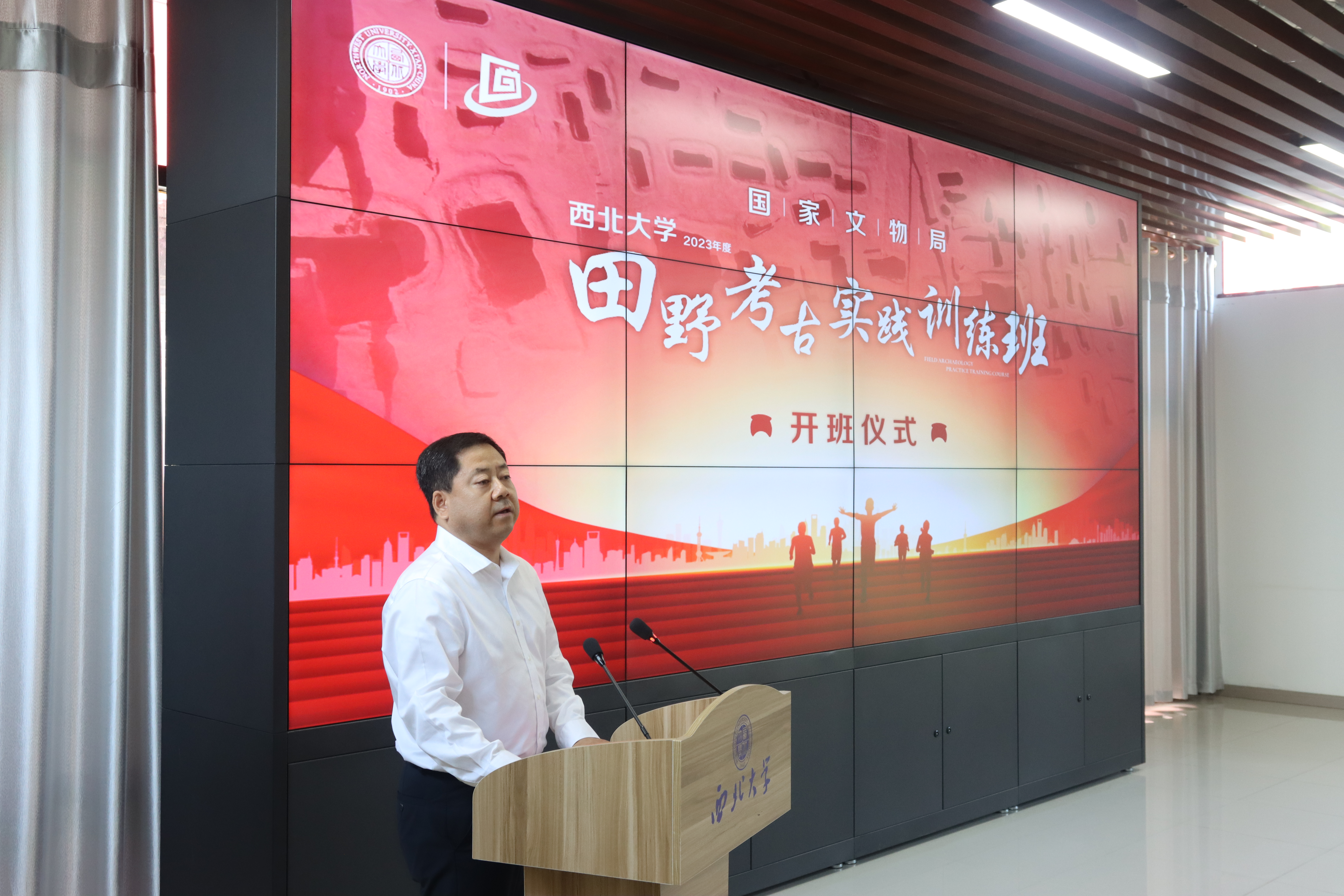 9月5日上午,国家文物局2023年度田野考古实践训练班(1946伟德官方网站)开班仪式在我校古豳地考古综合实习基地举行,国家文物局副局长关强、考古司司长闫亚林、考古司考古管理处处长胡传耸,陕西省文物局副局长马宝收,咸阳市人民政府副市长蒋彬凤,旬邑县人民政府县长师虎,校党委书记王亚杰等相关单位领导出席会议,训练班指导教师和全体学员参加会议。仪式由校党委常委、副校长吴振磊主持。
