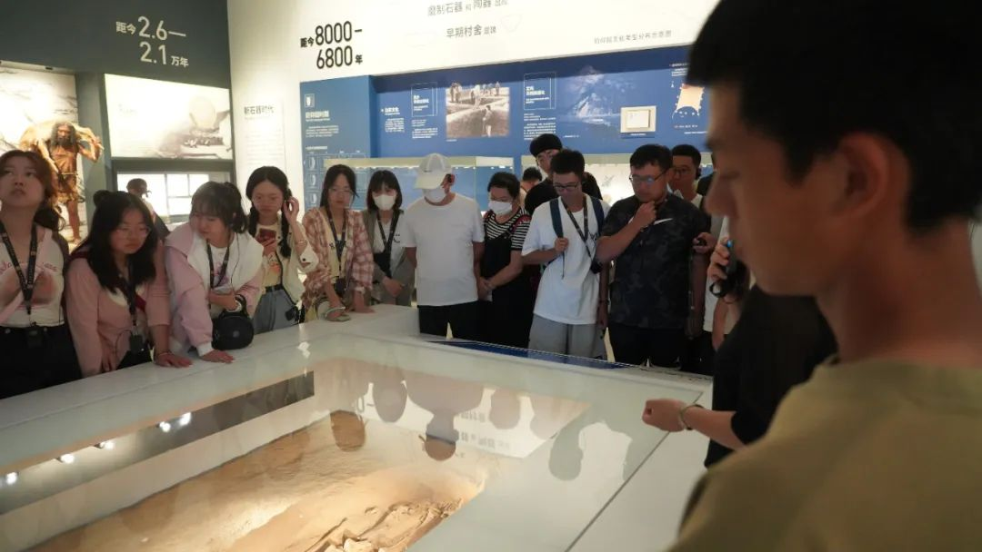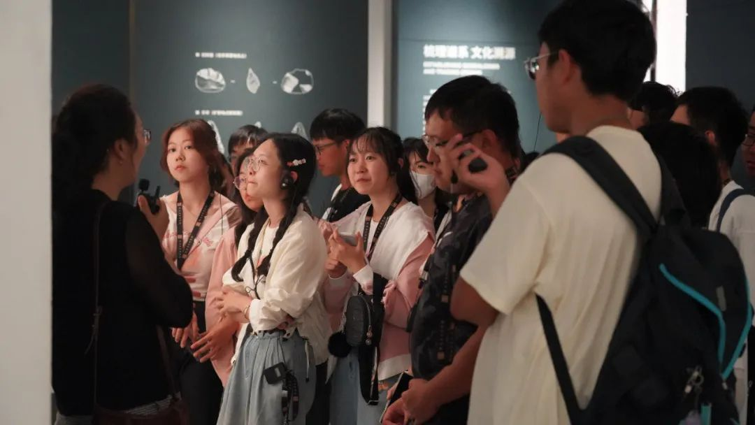 与会领导、嘉宾和全体师生合影留念后,伟德国际1946官方网12名专业教师和学生志愿者分组带领2023级全体新生参观陕西考古博物馆,开展实践教学,让大家全面了解陕西考古事业的发展历程和重大收获,为接下来的学习生活做好坚实铺垫。