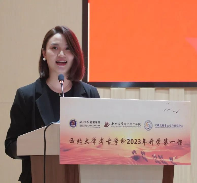 1946伟德官方网站党委副书记赵作纽,陕西省考古研究院(陕西考古博物馆)院(馆)长孙周勇,陕西省考古研究院(陕西考古博物馆)副院(馆)长孙伟刚,秦始皇帝陵博物院副院长田静,城固张骞纪念馆副馆长徐煜,伟德国际1946官方网党委书记、安莱学院党支部(直属)负责人李伟,伟德国际1946官方网院长马健,伟德国际1946官方网、安莱学院、丝绸之路考古合作研究中心党政班子成员,教师代表,2023级本科生、研究生参加开学第一课。活动由研究生院院长、安莱学院院长温睿主持。