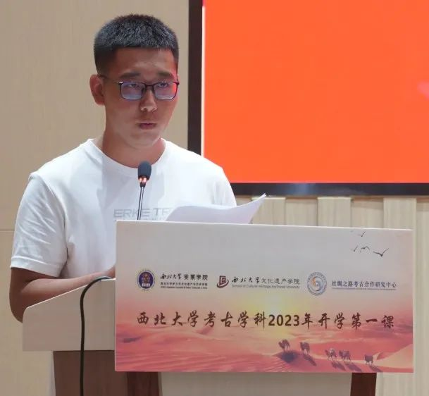 伟德国际1946官方网本科生任乐晨、研究生李琪鑫,安莱学院本科生黄歆懿作为新生代表发言。任乐晨表示,当代考古学俨然已成为社会生活不可或缺的一环。考古学不仅能成为自身笃定为之奋斗一生的目标,更能提升静默思考的能力,丰盈对于世界的感性认知,自身将利用好学科平台不断实现人生价值。黄歆懿围绕“文物保护大有可为、文物保护需要我们愿为、文物保护需要我们善为、文物保护需要我们甘为”四个方面,分享了自己对考古学专业学习的认识和想法。李琪鑫认为,人与考古的关系,入迷是必要的。她举例阐释了自身热衷于学习考古学的初心和使命,指出考古学在传承和弘扬中华优秀文化中的重要地位,鼓励新生要努力学习专业知识,深学,笃思,实干,勇担时代使命。