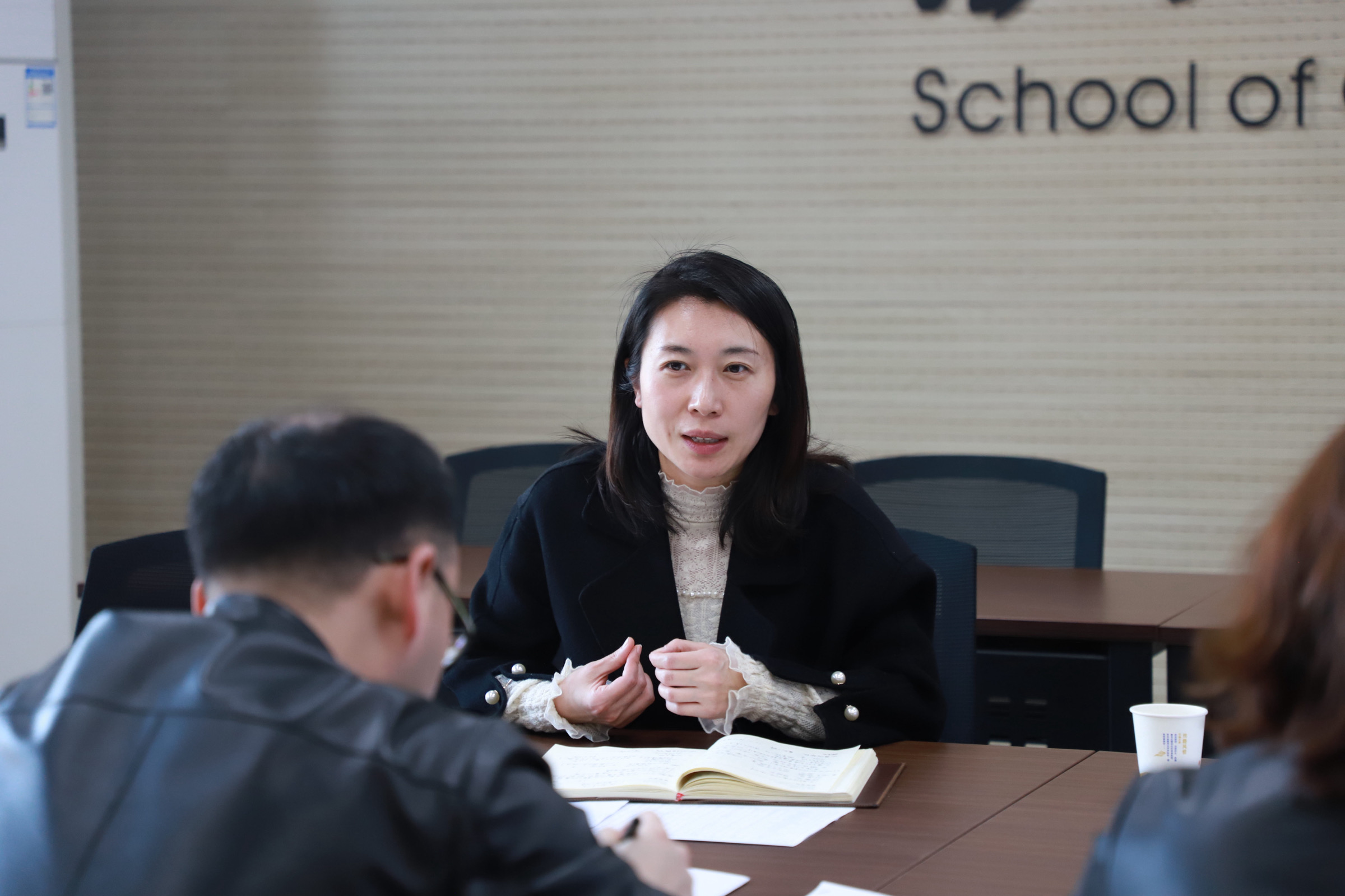 李伟代表学院对校领导一行来院调研指导工作表示欢迎。她就学院2024届毕业生就业工作做了整体汇报。针对目前学院就业工作存在的难点问题,她提出,下一步将从拓展新领域、新区域、新单位三个方面动员全院师生,通过增加新领域就业宣讲、扩展学生就业区域、丰富实习单位类型等举措把握当前就业趋势。