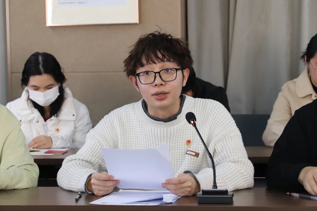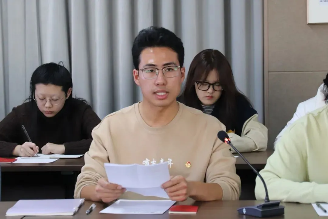 在支部专题组织生活会上,李浩榛同学汇报了团支部工作,重点报告团支部团员和青年主题教育情况,通报了团支部委员会查找不足等情况。团支部成员苗钊瑞、魏琰昭、苏云君、宜国斌等同学结合理论学习、实践体验等依次发言,汇报了理论学习体会、深入开展批评与自我批评。团支部对照团员先进性评价指导标准和参考细则,开展了团员民主评议。